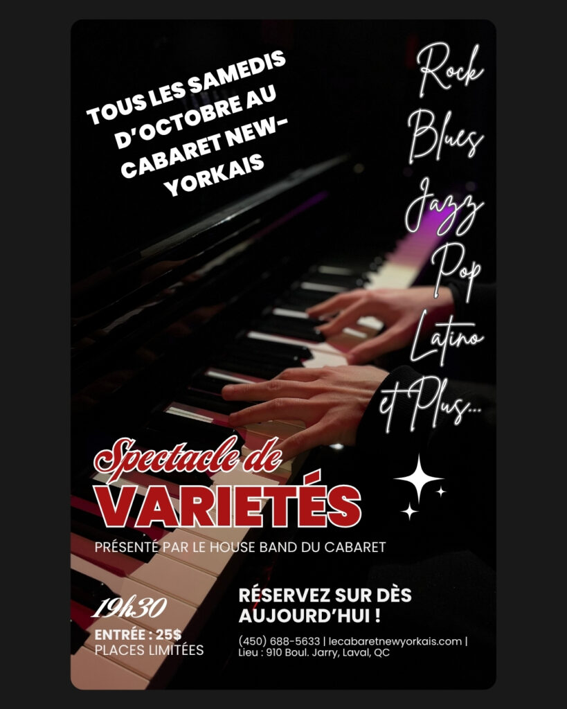Vivez l’énergie vibrante du Cabaret New-Yorkais à Laval, où le jazz live, le blues et le rock animent la soirée. Profitez des performances puissantes de notre House Band et découvrez de nouveaux talents lors de nos soirées d’improvisation. Les places sont limitées – réservez maintenant!